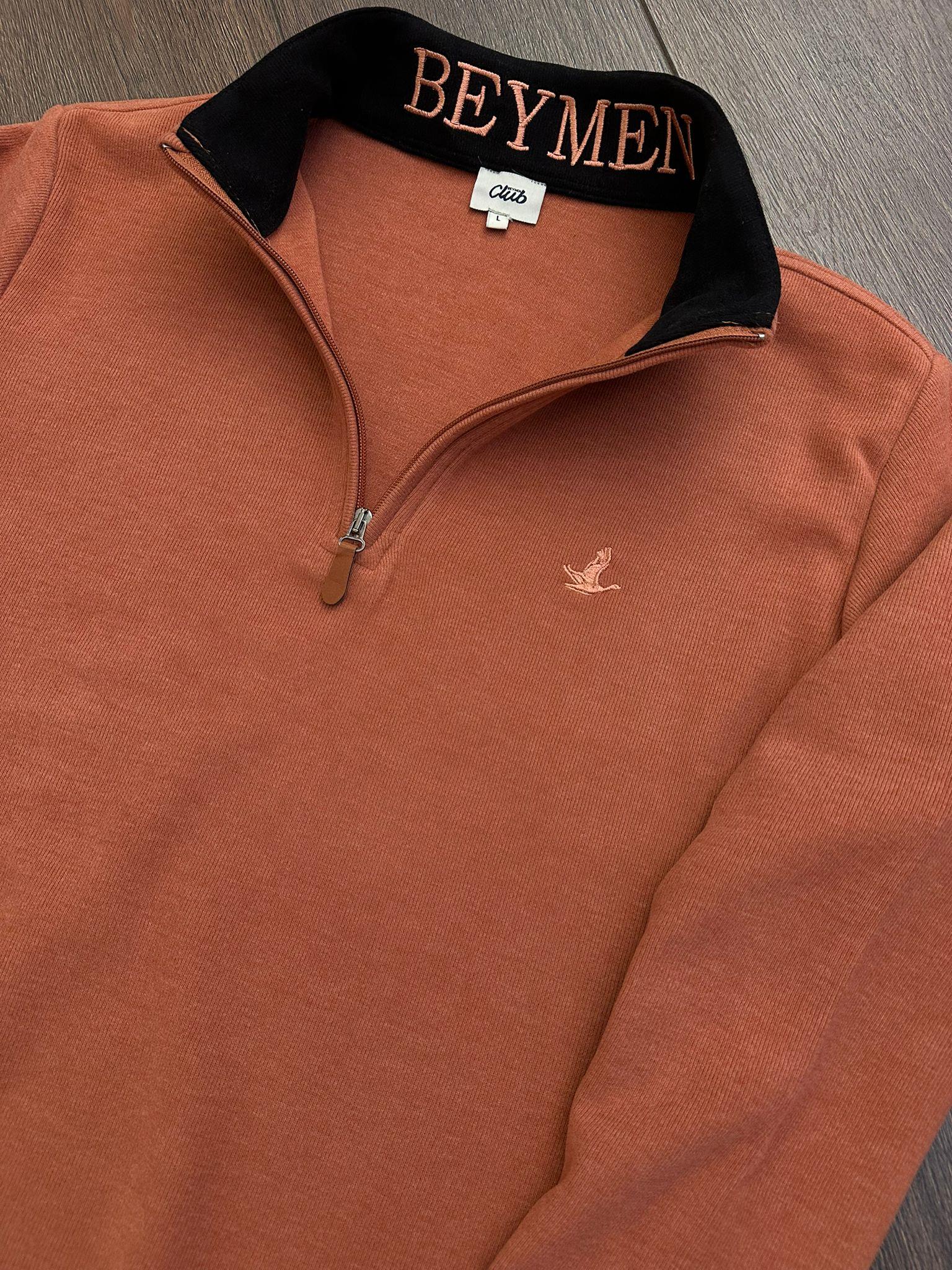 Selanik Kumaş Yaka Yazılı Yarım Fermuar Sweatshirt (st007051)