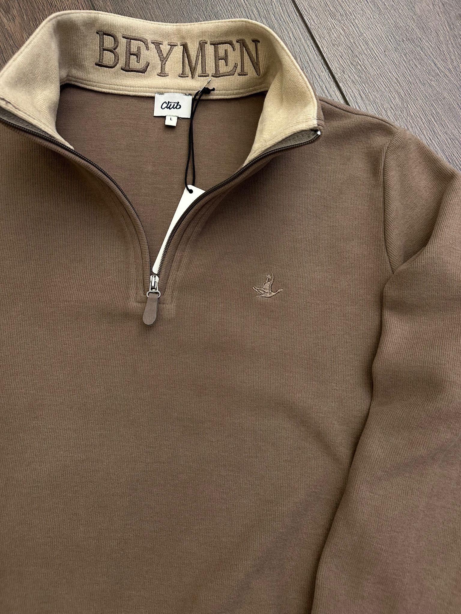 Selanik Kumaş Yaka Yazılı Yarım Fermuar Sweatshirt (st007051)