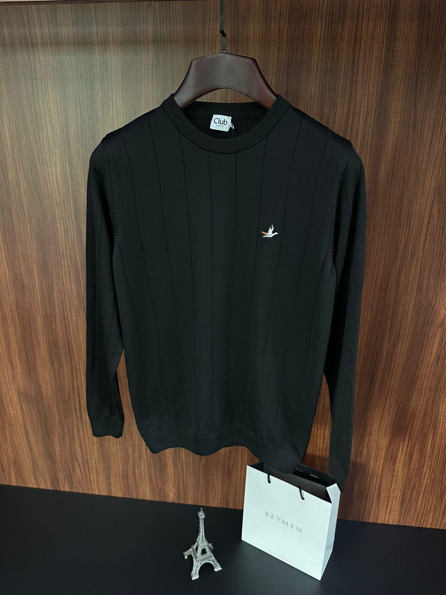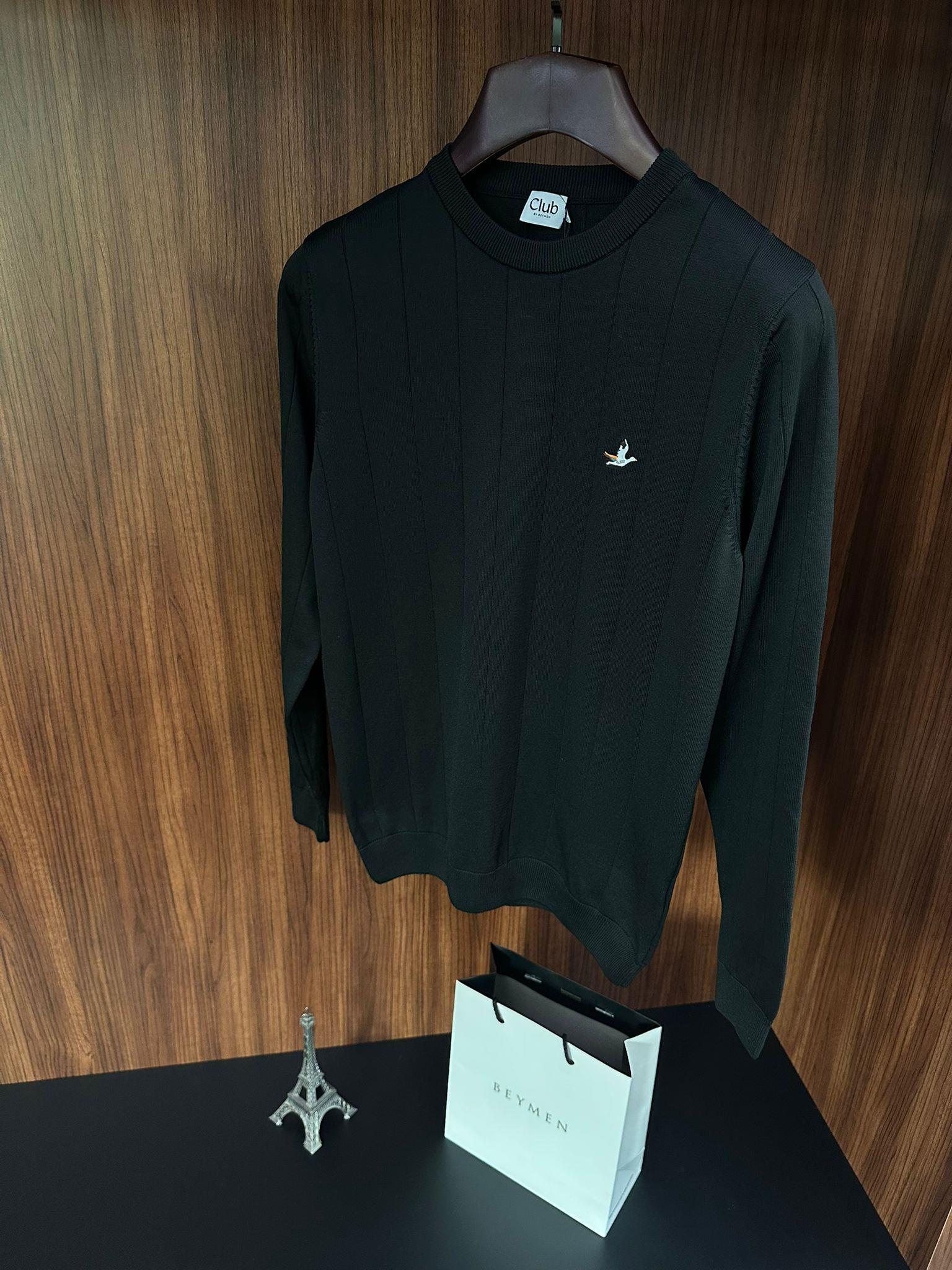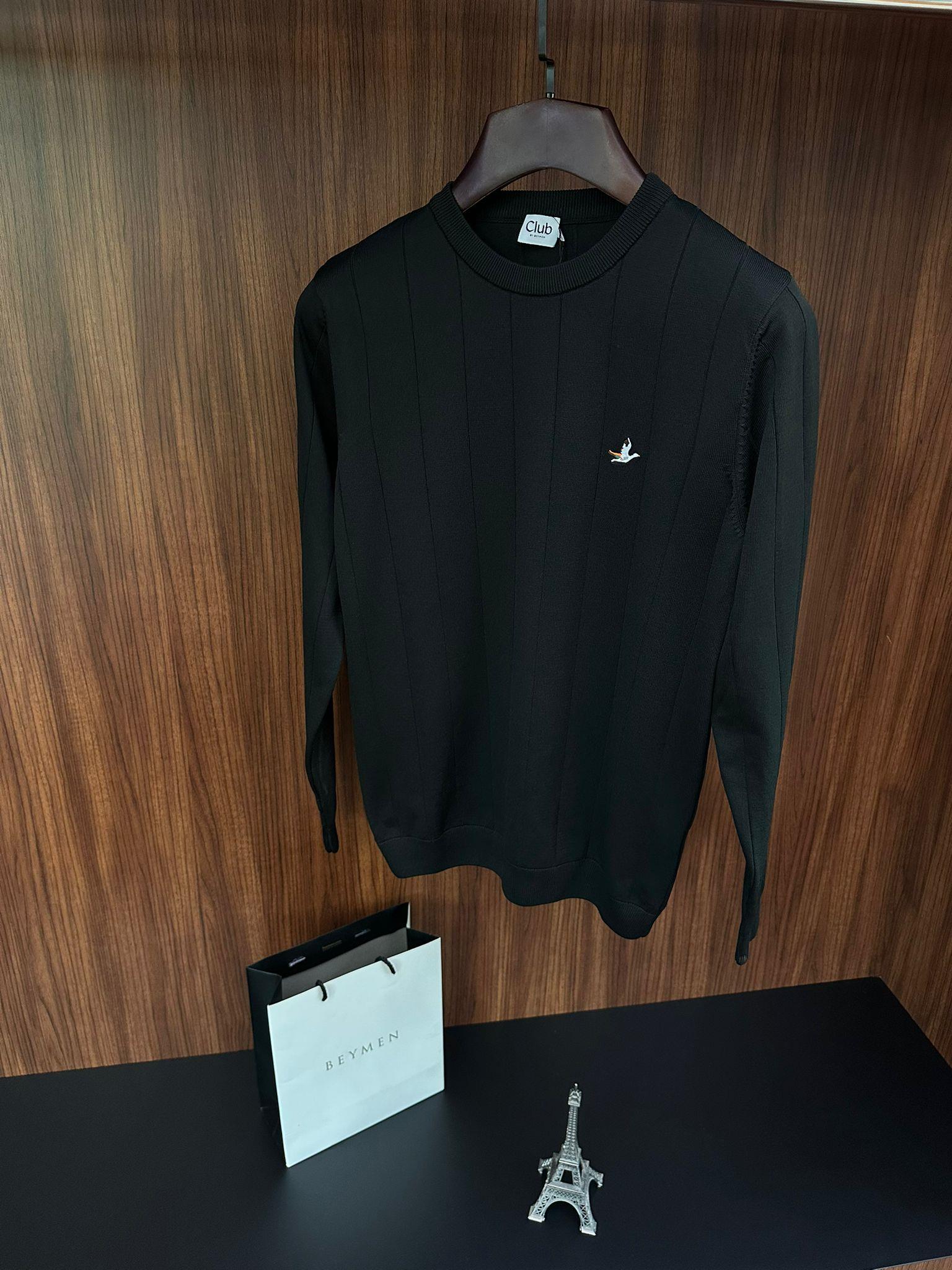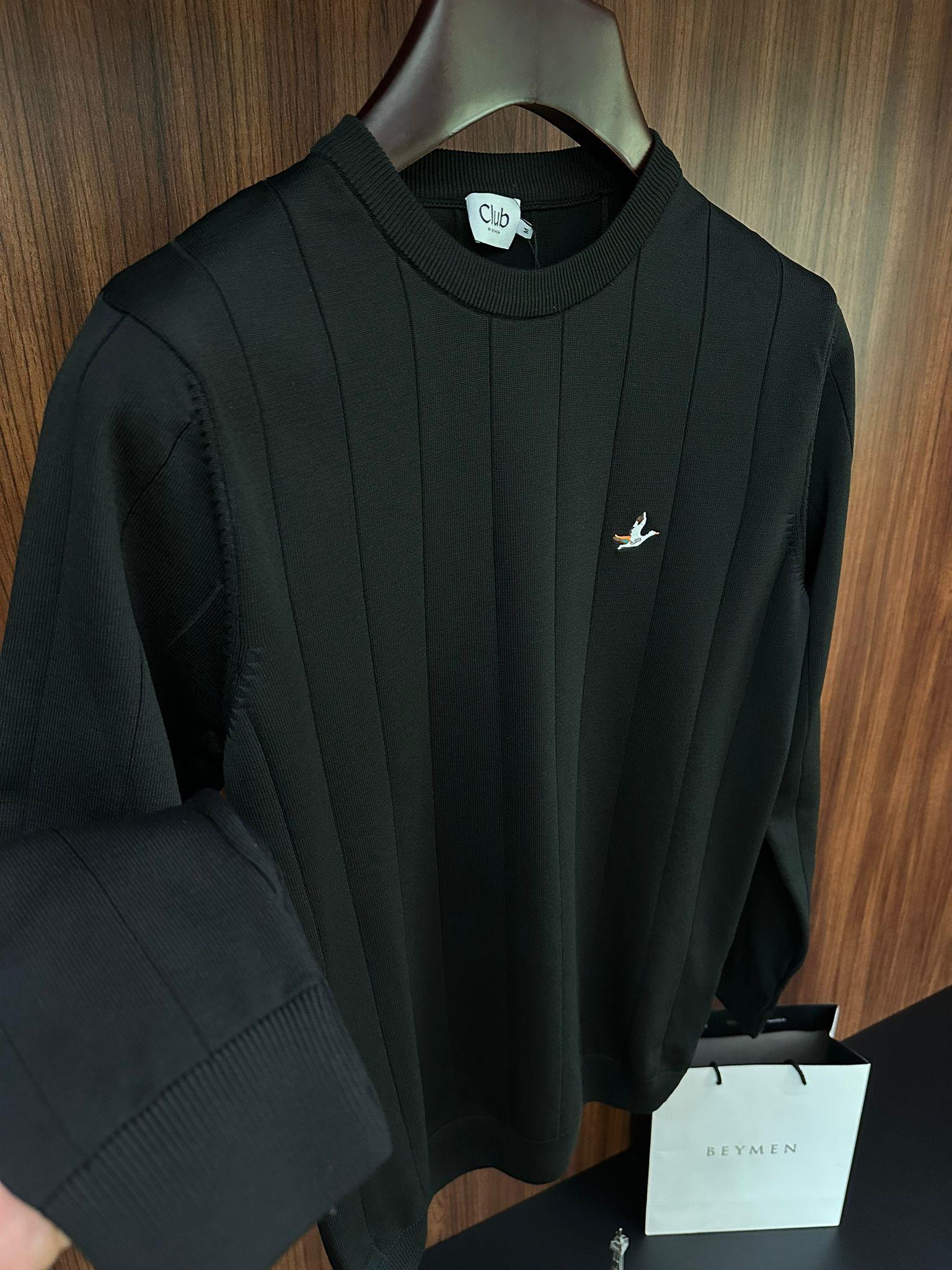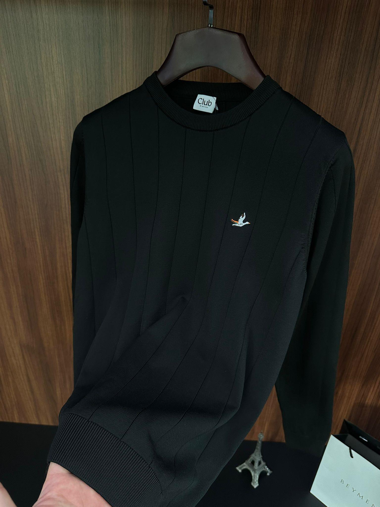 Şerit Detaylı Nakış Logolu Triko Kazak Şerit Detaylı Nakış Logolu Triko Kazak